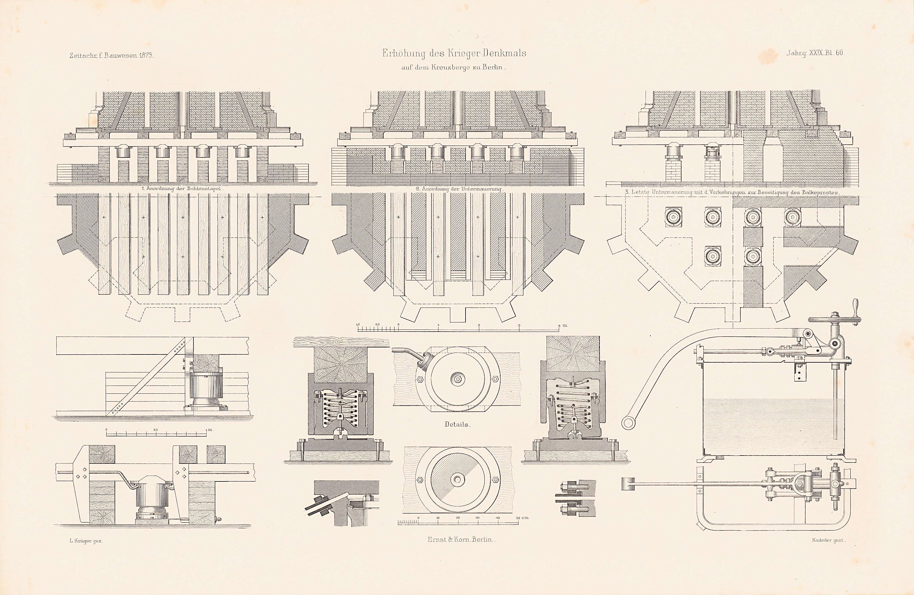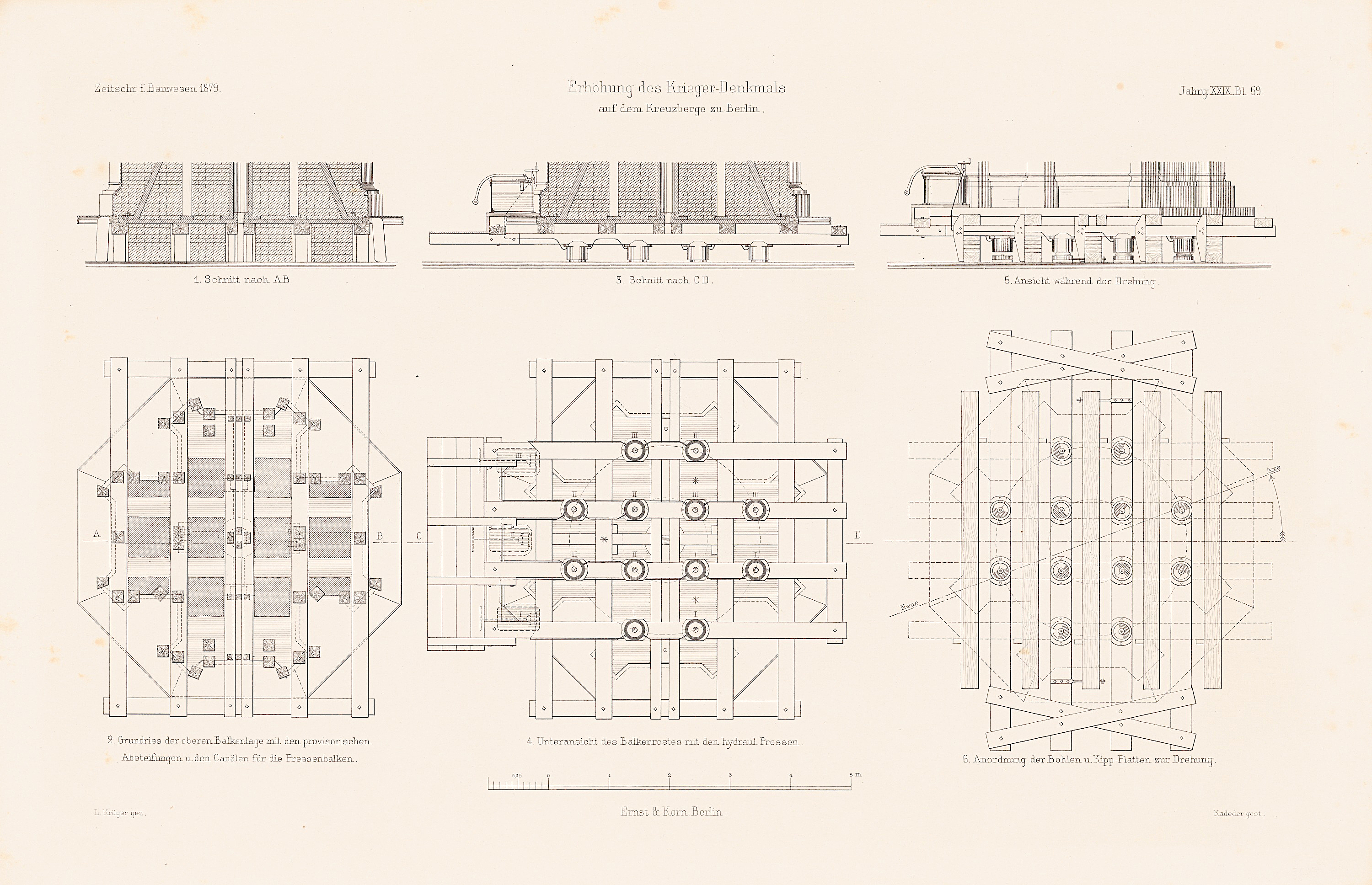 Kaiser Wilhelm I. beauftragte für die Anhebung des 380 Tonnen schweren Denkmals den Geheimen Baurat (oberster preußischer Baubeamter) Johann Wilhelm Schwedler.