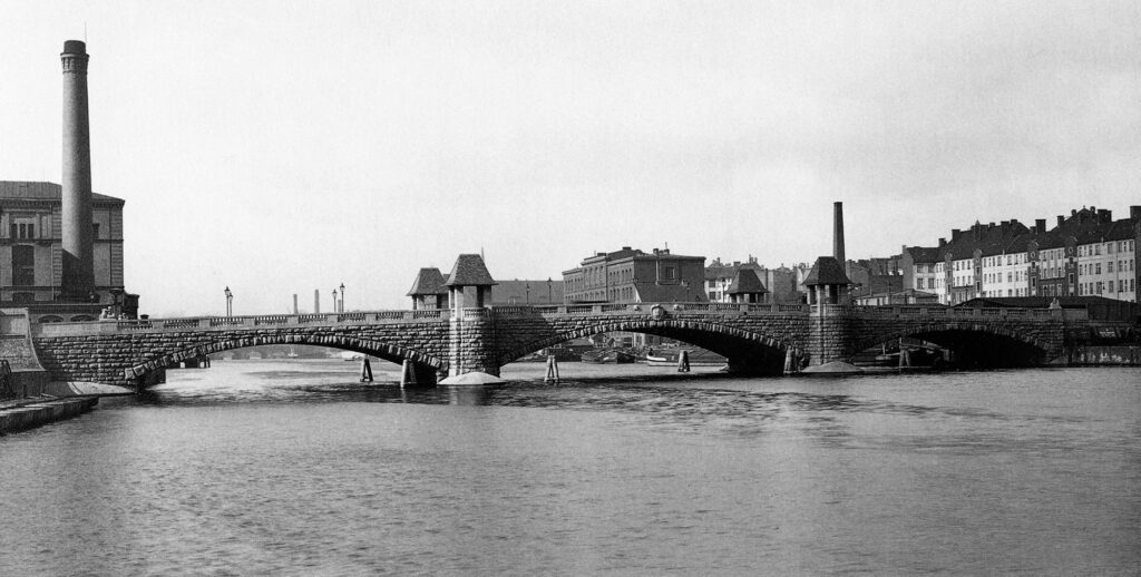 Zwischen der Oberbaumbrücke und der Michaelbrücke überspannt die 1912 umgebaute Schillingbrücke die Spree im Ortsteil Friedrichshain. Foto: Hermann Rückwardt. Weiterlesen