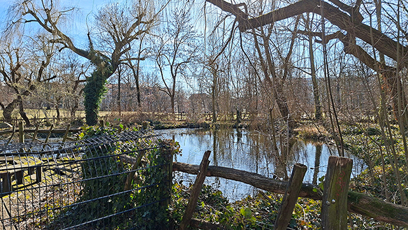 Blick über den kleinen Ententeich auf dem Weg zu den Bunkerbergen, jetzt kann man sich noch entscheiden, kleiner oder großer Bunkerberg.