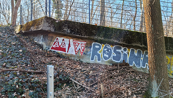 Nicht standsichere Bäume in Hanglage wurden gefällt und als Totholz hinterlassen, für den Halt der Hänge und die Ansiedlung von Insekten. Es werden langlebige, klimaresistente, möglichst einheimische Bäume und Sträucher auf den Hängen angesiedelt. Dafür wurden die Hangflächen eingezäunt.