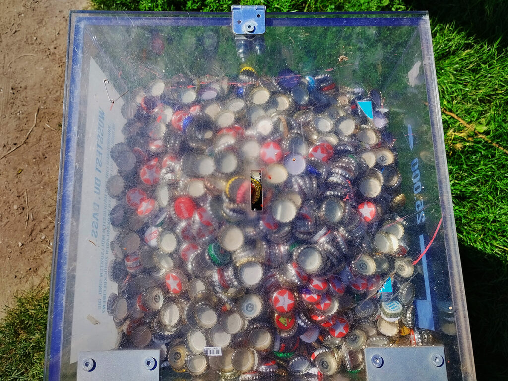 Also sammelt Kronkorken und steckt sie in den Behälter anstatt sie in der Gegend rum zu schmeißen.