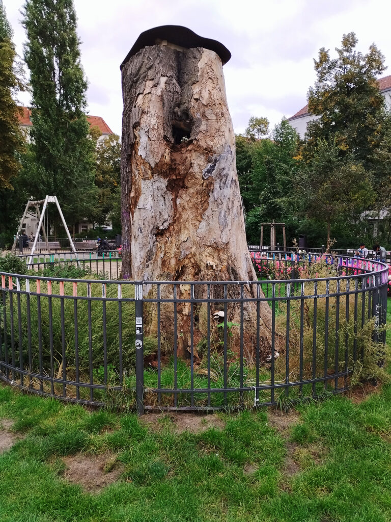 In diesen Baumstamm leben Fledermäuse und Insekten